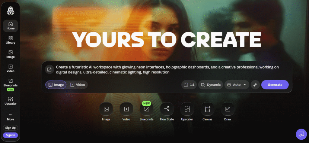 Beginners can use the free plan, but users without experience in prompt writing or visual design may need time to get consistent results. It may not suit users looking for simple, one-click design tools.