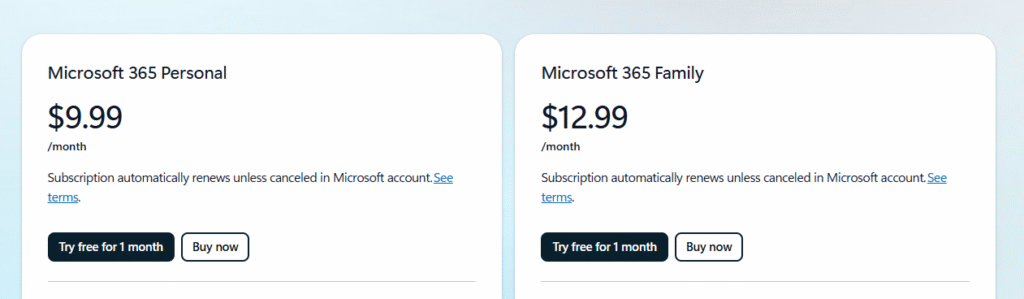 Microsoft Copilot follows a layered pricing model. A free version is available with limited capabilities through Copilot Chat. Paid access is included with Microsoft 365 subscriptions such as Personal ($9.99/month) and Family ($12.99/month), with higher usage limits. Business plans start around $25.20 per user/month, and enterprise plans are priced around $30 per user/month (annual commitment). Pricing varies based on plan type and region. For updated pricing, refer to the official website.